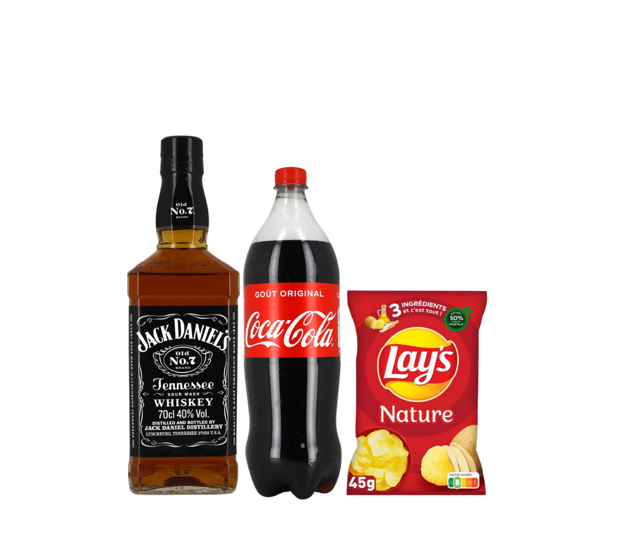 Formule avec une bouteille de gin Gibson’s 70cl, 1 La French Tonic Water 1L et un paquet de chips Lay’s nature 45g.